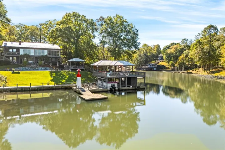 PRICE IMPROVEMENT just in time for spring! “DEEDED LOT” *** This stunning lake home has several outdoor areas for entertaining, patio, deck, gazebo, double decker covered dock with boat lift and jet ski port. Exotic Fountain/waterfall cascading into the custom pool that overlooks the Chattahoochee River. Too much to list Must see to believe. With over 3700 sq ft of living space and a 2 car garage couple with custom workshop that may house an additional car there is sure to be enough room for your family to find their special happy place. Interior would benefit from some updating in the paint and floor dept so the Seller is offering a $25,000.00 concession towards the buyers choice of upgrades or closing cost etc. Incredible views from nearly every room will leave your guest in awe. Must see to believe the beauty of this location, check out the most awesome sunset views on this “DEEDED LOT” Lake Harding!