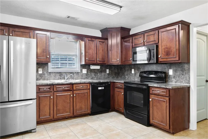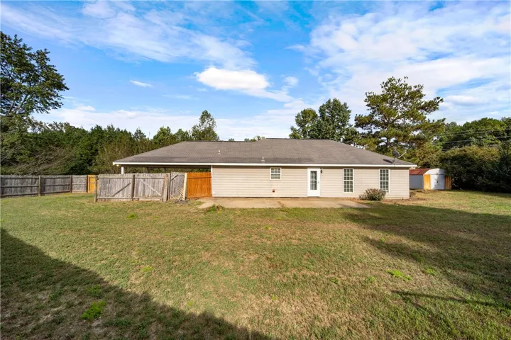 This property combines peaceful country living with practical features in the desirable area of Haley Woods Subdivision. This charming 3br, 2 bath home is situated on a large fenced lot. There is 1,353 sq ft of well designed living space. This home offers a split floor plan for added privacy and comfort. The spacious living room features beautiful hardwood floors and a vaulted ceiling, creating a bright and open feel. The kitchen is equipped with black appliances and offers prep space plus a dining area, making it perfect for everyday cooking or entertaining. The large laundry room adds storage + convenience, and the double carport provides sheltered parking.