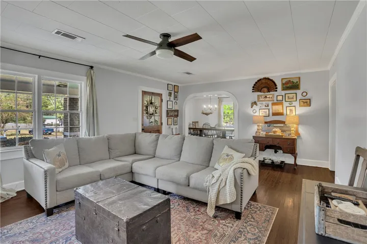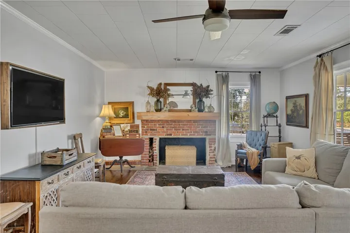 Bring your fishing poles and horses! This lovely century-old home on over 5 acres is full of charm. Boasting 3 bedrooms and 2 bathrooms, original hardwoods that have been refinished, and a wonderful front porch and swing for relaxing. Large living room and formal dining room with plenty of light. The kitchen is oversized with room for a table or island. An additional flex space could be used as an office. At the rear, you have a laundry/mudroom combo with a sink and an additional storage room just outside. The double carport is currently used as an outdoor entertaining area. A large shaded fenced-in area gives your pets plenty of room to play. Sit outside and enjoy the view. Look for the wildlife out in the pasture. The pond in the back is stocked with bass and bream and has its own fishing pier. This home is a quiet retreat and a nature lover’s dream. A beautiful old barn also sits on the property and is perfect for additional storage. The sunset views here are absolutely amazing, and this home is ready to receive a new owner. Call today to view this home.