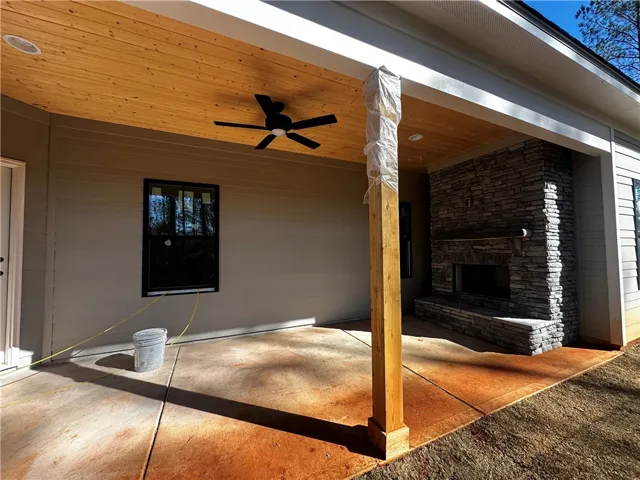 Set on 3 acres, this new construction home features 4 bedrooms and 2 bathrooms with an open, airy layout designed for modern living. The main living areas feature luxury vinyl plank flooring and flow seamlessly into the beautiful kitchen, which offers granite countertops, custom shaker cabinets, and a large center island overlooking the great room. The great room’s electric fireplace creates a cozy focal point, while the covered back patio with a wood-burning fireplace extends your living space outdoors, perfect for entertaining or relaxing in privacy. The owner’s suite serves as a true retreat, complete with dual vanities, a separate tile shower, a deep soaking tub, and a massive walk-in closet. The guest bathroom also features dual vanities for comfort and convenience. Thoughtfully built with attention to detail, this home combines style, function, and flexibility. Buyers can still select finishes and colors from the builder’s samples and allowances to make it truly their own.
