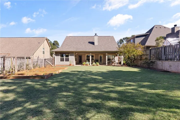 This beautifully maintained 4-bedroom, 3-bathroom home offers ample natural light and thoughtful updates throughout! It’s located just two blocks away from a multi-use path to downtown and campus. The neighborhood pool and pond are additional perks! The inviting foyer welcomes you with a built-in drop zone and flows into the living room. The showcase wood-burning, stone fireplace is the perfect focal point for the open concept living, kitchen and dining room; a great setting for gathering and entertaining. Step outside to a backyard designed for relaxing and connecting, an extended covered patio invites you to dine al fresco or unwind by the garden, while the peaceful, fenced yard offers room to play, plant, and enjoy the outdoors. Raised garden beds and irrigation make it a green-thumb dream! Back inside, the kitchen offers stained cabinetry outfitted with customized pull-outs and a large island with bar height seating. Don’t miss the two pantries! Across from the stairs, you’ll enter the primary suite, which feels like your own private getaway with sunlight streaming through generous windows and a calm, airy feel. The ensuite includes a double sink vanity, walk-in shower, soaking tub and private water closet. Currently used as a home office, a 2nd bedroom is also on the first floor, with an adjacent 2nd bathroom. Enjoy the updated, upscale lighting throughout this home, hardwood floors across the main level and a laundry room conveniently located near the kitchen and garage. Upstairs, you will find two spacious bedrooms and a shared bathroom. The second level also offers a bonus nook, perfect for providing a secondary lounge space to family or guests. And to top it off, the nearly-new roof! With its blend of charm, comfort, updates and location, this home truly shines.