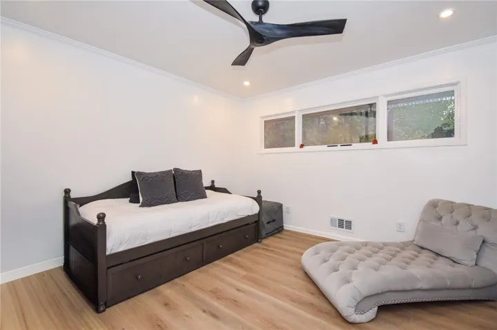 The primary suite is generously sized, offering an expansive en-suite bath and a walk-in closet with built-ins to keep everything organized.