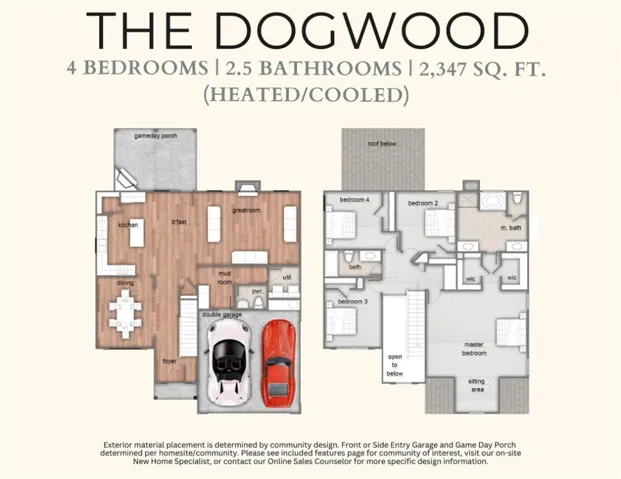 Discover The Haven at Plainsman Lake, a Hughston Homes community in Auburn, AL, where scenic nature trails and peaceful lake views create an inviting escape. Welcome to the Dogwood A Floorplan, a beautifully designed Traditional Craftsman offering 2,379 sq. ft. of elegant living space with 4 bedrooms and 2.5 baths. Step into the impressive two-story foyer that leads to a formal dining room featuring coffered ceilings and detailed trim work. The spacious great room includes a cozy gas fireplace, perfect for relaxing or entertaining. The open-concept gourmet kitchen is a showstopper, featuring stylish cabinetry, granite countertops, a tiled backsplash, and premium stainless steel appliances, including a gas cooktop, wall-mounted microwave and oven, stainless vent hood, and upgraded dishwasher. The large center island is ideal for meal prep or casual gatherings, while the generous pantry provides ample storage. The owner’s entry from the two-car garage showcases our signature Drop Zone with built-in cubbies, laundry area, and a conveniently located half bath. Upstairs, the luxurious owner’s suite offers a private sitting area, dual walk-in closets, and a spa-like bath with a garden tub, tiled shower, and double vanity. Additional bedrooms are spacious and filled with natural light, sharing a well-appointed full hall bath. Enjoy Luxury vinyl plank flooring that extends through the main living areas, so many luxury details and finishes throughout this home. Enjoy the outdoors on our Signature Gameday Patio with a wood-burning fireplace, perfect for entertaining year-round. Smart Home technology features are included, adding comfort, convenience, and modern style to your everyday living. Experience elevated living at The Haven at Plainsman Lake!