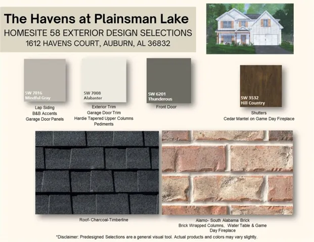Discover The Haven at Plainsman Lake, a Hughston Homes community in Auburn, AL, where scenic nature trails and peaceful lake views create an inviting escape. Welcome to our Cannaberra A Floorplan, a stylish and functional 5-bedroom, 3-bath home offering 2,787 sq. ft. of beautifully designed living space. Natural light fills the welcoming foyer, leading to a formal dining room with a coffered ceiling and detailed trim work. The spacious great room features a cozy gas fireplace and flows seamlessly into the open-concept kitchen, complete with abundant cabinetry, granite countertops, a tiled backsplash, and a gourmet appliance package that includes a gas cooktop, stainless vent hood, and built-in oven/microwave. The large center island with a sink and integrated dishwasher creates the perfect space for entertaining, while the walk-in pantry provides ample storage. The owner’s entry showcases our signature Drop Zone with built-in cubbies to help keep life organized. A fifth bedroom and full bath on the main level offer flexibility for guests or a private office. Upstairs, the expansive owner’s suite serves as a peaceful retreat, featuring a luxurious bath with a garden tub, separate tiled shower, double vanity, and a spacious walk-in closet. Additional bedrooms are filled with natural light and offer generous closet space, the conveniently located laundry room, and a hall bath complete the upper level. Enjoy luxury vinyl plank flooring throughout the main living areas and a host of luxury included high-end features. Step outside to the Signature Gameday Patio with a wood-burning fireplace, the perfect place to relax or entertain on the weekends.