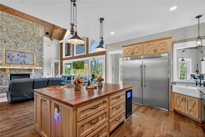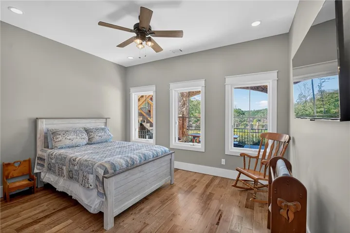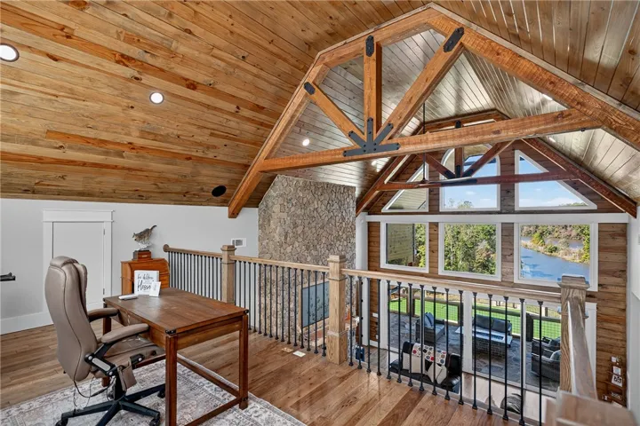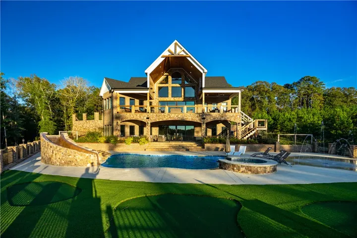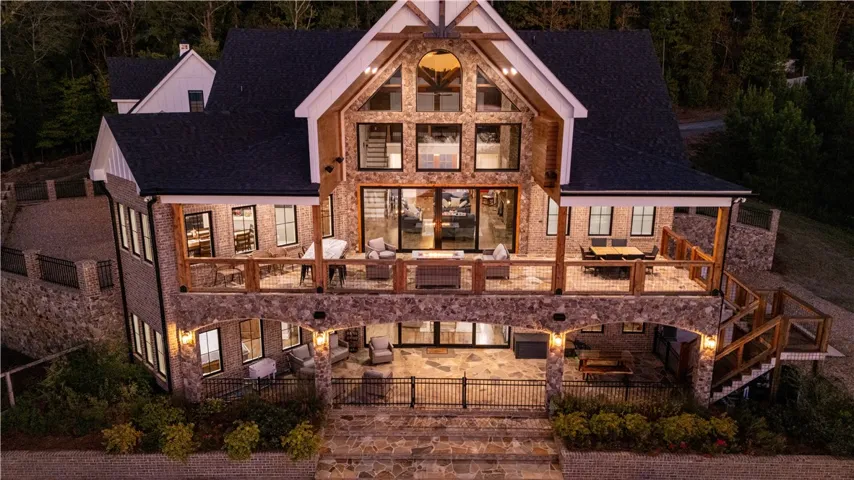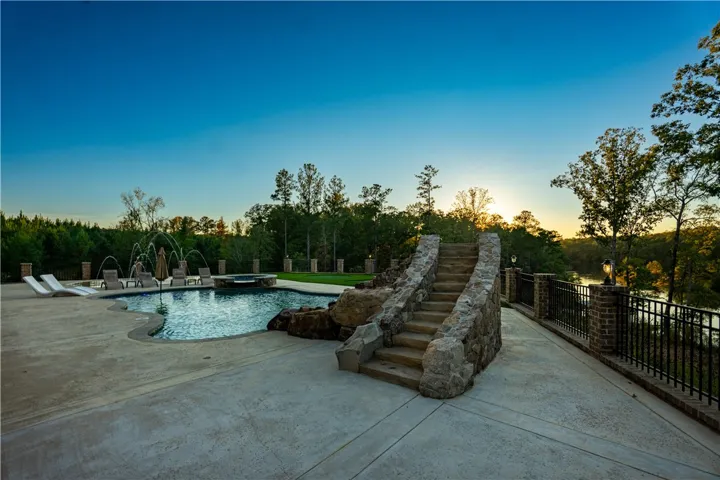 Perfectly positioned on 7.08 deeded acres at the mouth of Mountain Oak Creek, this custom-built retreat offers 4,328± heated square feet of pure perfection Over 90,000 pounds of hand-selected Tennessee stone. Step inside to soaring ceilings, rich hickory floors, and a 10½-foot-wide stone fireplace that anchors the great room. Sliding glass doors open fully to bring the outdoors in, framing panoramic lake views. The inset TV with surround sound and remote shade screens create the ultimate entertaining environment. Enjoy comfort and craftsmanship, from the live-edge cedar mantle to the stone-accented back deck with a gas firepit, bar area, and 98” outdoor TV. The custom kitchen boasts a 5’x7’ hickory island with seating for four, quartzite countertops, farmhouse sink, commercial-grade Frigidaire refrigerator/freezer, Schott range with vent hood, built-in microwave, LG dishwasher, ice maker, and double built-in trash bins. A pass-through window connects to the dining room, while the walk-in pantry with barn doors, cedar shelving, and walls adds both function and beauty. The main-level owner’s suite is a peaceful retreat, featuring quartzite countertops, double vanity, large walk-in closet, and a spa-inspired tiled shower. A loft-style office above provides inspiring lake views. Downstairs, enjoy 10-foot ceilings, three spacious bedrooms, and two full baths — including a double-vanity suite and tub/shower combo bath. Laundry hookup, hickory floors, tile baths, wood ceilings, and a stone fireplace make this level ideal for guests or multi-generational living. The Upstairs patio overlooks the pool area and contains a large 98” TV that lets down, gas fire-pit, Quartzite bar area, and surround sound. The outdoor entertainment continues with a fold-down TV, stone patio, and concrete steps leading to your private dock and a future-ready 16’x35’ gazebo/fire pit area. Step outside to discover your personal paradise — SEE ADD’L INFO UNDER AGENT REMARKS