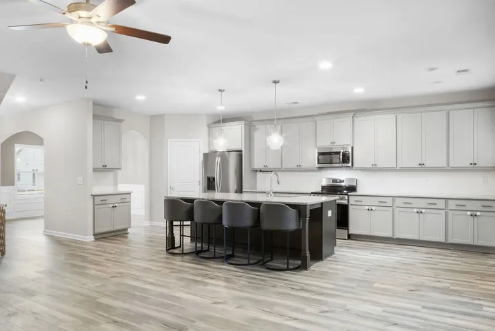 Immaculate 5 bedroom 3 bathroom home in Drakes Landing. Why wait on new construction when you can move into this turnkey home now with a fence, appliances and established landscaping? This home offers so much space and plenty of upgrades! The main level features an open concept kitchen with an oversized island, stainless appliances and tons of cabinet storage flowing right into the living area. The formal dining room stuns as one comes through the front door with the beautiful coffered ceilings and elegant wainscoting making this space welcoming to guest and perfect for entertaining. Upstairs you will find the massive primary bedroom with double vanities, soaking tub and tile shower huge walk in shower . If you’re looking for space continue down the hallway to the other 3 bedrooms upstairs that are great sizes! The back yard is perfect for relaxing with the wood burning fireplace and tv already set up and ready for you!