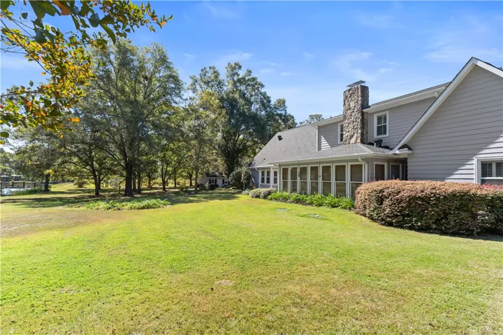 • Four-season sunroom with full heating and air conditioning overlooking back lawn and pond, opening onto a patio, ideal for grilling or relaxing