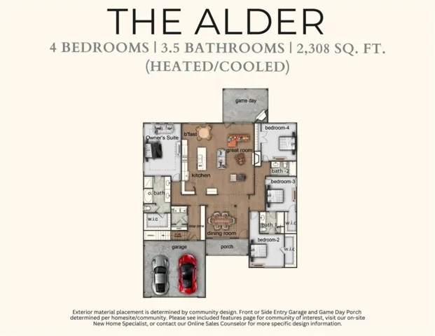 Welcome to Wyndham Village, a charming Hughston Homes community nestled in Opelika, Alabama, where modern living meets small-town comfort. The Dogwood A floor plan offers 2,379 sq. ft. of stylish, sensible living with 4 bedrooms and 2.5 baths. Step into the foyer with soaring 2-story ceilings and a formal dining room with coffered ceilings and elegant trim details. The spacious great room features a gas fireplace. It flows seamlessly into the open kitchen, which includes stylish cabinetry, granite countertops, tiled backsplash, stainless steel appliances, and a large center island overlooking the breakfast area. A walk-in pantry provides additional storage. The owner’s entry includes our Signature Drop Zone with built-in cubbies, while the mud room, half bath, and laundry are conveniently located on the main level. Upstairs, the generously sized owner’s suite includes a sitting area, tray ceiling, and luxurious bath with a garden tub, tiled shower, vanity, and huge walk-in closet. Additional bedrooms are bright and spacious, sharing a centrally located full bath. Luxury vinyl plank flooring flows throughout the main living spaces. Step outside to the signature Gameday Patio, perfect for fall football, with a wood-burning fireplace, ceiling fan, and outdoor speakers. Included features such as smart home technology, a two-car garage, and community amenities like a pool, playground, and pavilion make this home the perfect blend of comfort, style, and lifestyle.