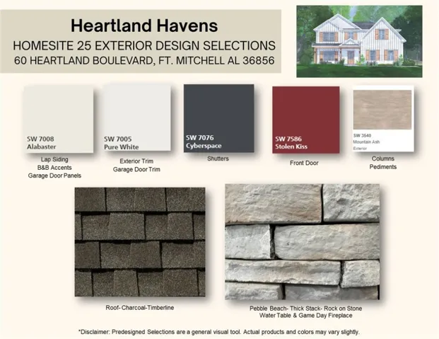 Discover Heartland Havens in beautiful Fort Mitchell, Alabama, a vibrant, newly developed Hughston Homes community offering peaceful surroundings, modern living, and small-town charm just minutes from local conveniences. Welcome to our Cannaberra B Floorplan, where style meets functionality! This 5-bedroom, 3-bath home offers 2,864 sq. ft. of open, inviting living space designed for comfort and connection. Step into the light-filled entry foyer that opens to a formal dining room with an elegant, coffered ceiling and detailed trim work—the perfect setting for gatherings and celebrations. The spacious great room features a cozy wood-burning fireplace, creating an inviting focal point for family and friends. The chef-inspired kitchen shines with stylish cabinetry, granite countertops, a beautiful, tiled backsplash, and stainless-steel appliances, including an electric range. The large island with integrated sink and dishwasher makes multi-tasking effortless, while the walk-in pantry provides excellent storage for all your essentials. Just off the garage, the owner’s entry includes our Signature Drop Zone with built-in cubbies, the perfect spot to stay organized. A fifth bedroom and full bath are conveniently located on the main level, ideal for guests or a private home office. Upstairs, retreat to your expansive owner’s suite with vaulted ceilings, a luxurious bath featuring a garden tub, tiled shower, dual vanities, and a spacious walk-in closet. Additional bedrooms offer generous closet space and easy access to the hall bath and laundry area. Enjoy luxury vinyl plank flooring throughout main living areas, a two-car garage, and our Signature Gameday Patio—complete with a wood-burning fireplace, ceiling fan, and outdoor speakers, perfect for relaxing or entertaining. Elevate your lifestyle with included home automation, and discover the warmth and charm of Heartland Havens, where life feels both peaceful and full of possibility.