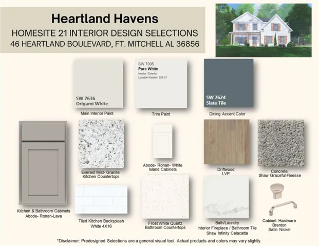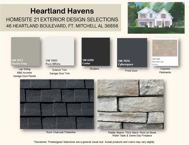 Discover Heartland Havens in beautiful Fort Mitchell, Alabama, a vibrant new Hughston Homes community that offers peaceful surroundings and a true sense of home. Enjoy modern comfort in a setting designed for relaxation, connection, and everyday convenience. Welcome to our Camden A Floorplan, featuring 2,599 sq. ft. of stylish living space with 4 bedrooms and 2.5 baths. Step into the inviting foyer with soaring two-story ceilings and a formal dining room showcasing a coffered ceiling and elegant trim details. The spacious great room centers around a cozy wood-burning fireplace, creating a perfect spot for gatherings and quiet evenings alike. The chef’s kitchen impresses with granite countertops, beautifully tiled backsplash, and stainless-steel appliances, including an electric range. A large center island with seating overlooks the breakfast area, ideal for casual dining or entertaining. The walk-in pantry (or optional butler’s pantry) provides abundant storage for every culinary need. Convenience meets organization with the Signature Drop Zone, complete with built-in cubbies, while the laundry room and half bath are tucked neatly on the main level. Upstairs, retreat to your expansive owner’s suite with a sitting area and a luxurious bath featuring a garden tub, separate shower, dual vanities, and a large walk-in closet. Three additional bedrooms offer generous space and natural light, along with a full bath nearby. Enjoy luxury vinyl plank flooring, a two-car garage, and our Signature Gameday Patio, featuring a wood-burning fireplace, ceiling fan, and outdoor speakers, perfect for relaxing or entertaining outdoors. 2-car side entry garage. Elevate your lifestyle with included home automation, and experience the warmth of community living in Heartland Havens, where every day feels like home.