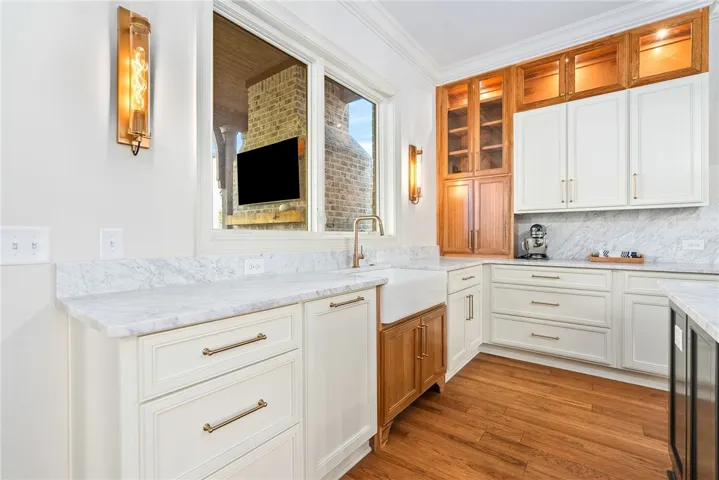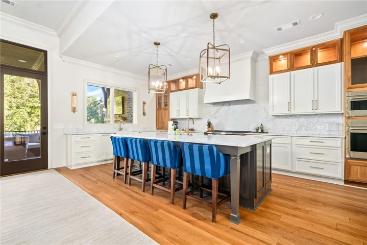 This residence embodies the classic luxury of the architecture through curated details such as designer selected furnishings and a warm palette that speaks to comfort and style. There are many bespoke selections, such as the Dining Room chandelier that was purchased in Naples from the estate of the palace of the Balbi and Durazzo families, originating in 1618. The luxurious custom sized wool rug in the Family Room was handwoven to specification in Tibet. Each space is dressed in rich textures and tailored silhouettes, complemented by updated vibrant accents that bring a joyful energy to the refined living of the spaces. Hand selected furnishings, sumptuous wool carpets, and artisanal finishes create an atmosphere of comfort and sophistication-both for families or those just starting out. It is equally as comfortable for a football game as a formal dinner.