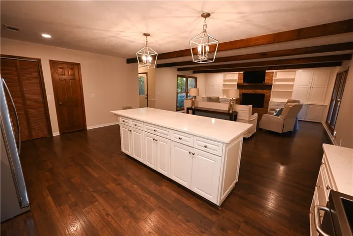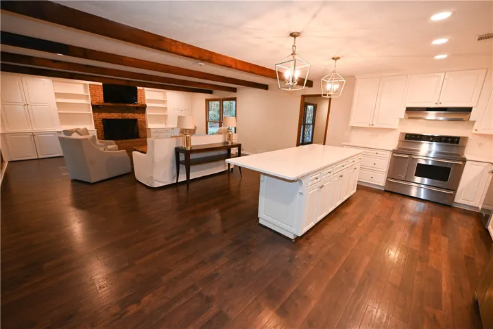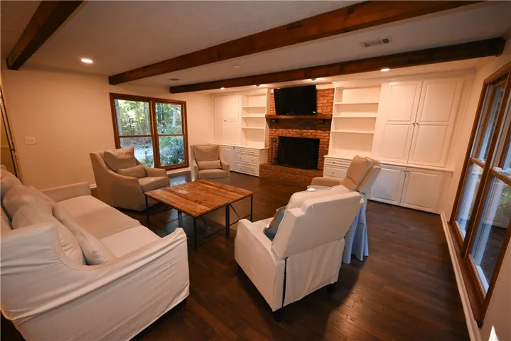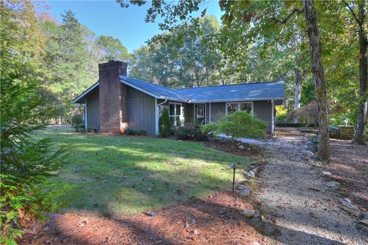 Nearly 4 wooded acres! Tucked quietly among mature hardwoods, this beautifully renovated one-level home offers the rare blend of privacy, character, & convenience—just 7 miles from Auburn University & minutes to Moores Mill dining & shopping. A long paved drive flanked by stone columns leads to a charming home surrounded by natural landscaping & Japanese maples. Inside, recent renovations enhance timeless details like exposed beams & large picture windows that flood the home with natural light. The open-concept kitchen & great room form the heart of the home, featuring custom white cabinetry, quartz counters, stainless steel appliances, & a spacious island perfect for gathering. The adjoining living area centers around a brick fireplace flanked by built-ins, creating a warm, inviting space ideal for entertaining or relaxing. The primary suite feels like a private sanctuary with double sinks, dressing table, walk-in closet, & spa-like shower with frameless glass enclosure. Two additional bedrooms & updated baths provide comfort for family or guests. Step outside to enjoy the serene patio tucked beneath colorful Japanese maples—perfect for morning coffee or evenings by a fire. The detached workshop garage adds space for hobbies, storage, or outdoor gear. With its peaceful setting, modern upgrades, & unbeatable location close to everything Auburn has to offer, this property delivers the best of both worlds: the feel of a private retreat with the convenience of in-town living.