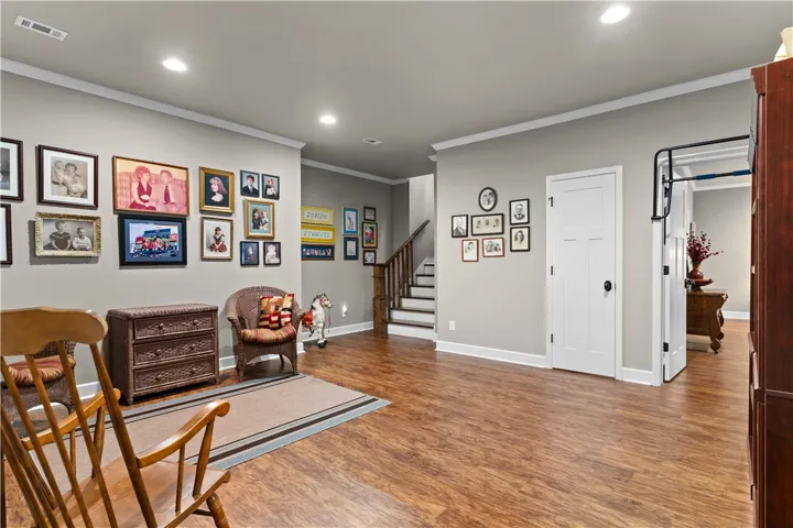 Downstairs, a large guest suite offers comfort and privacy with its own full bath, sitting area, access to a lower-level porch, additional office area, a TV room, and a large storage room.