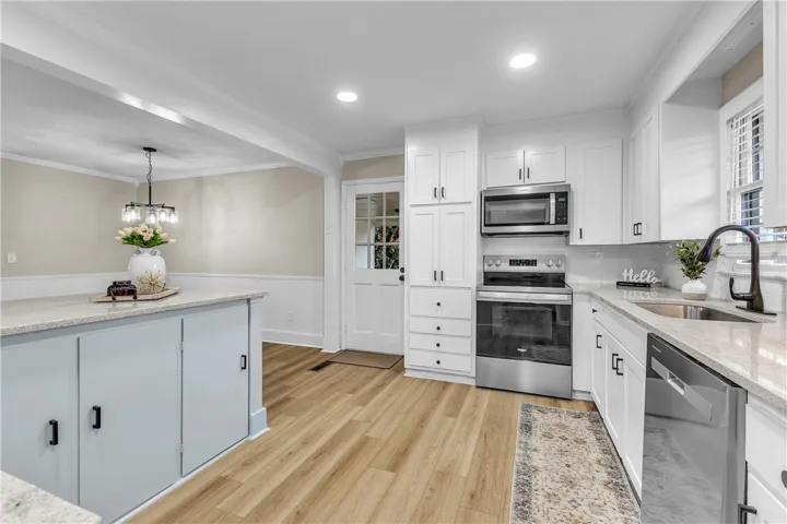 Updated 4 bedroom 2 bath home with two living areas! Brand new luxury vinyl floors throughout! Kitchen has new granite countertops, tile backsplash, new stainless steel appliances. Huge kitchen island. Main bedroom is large and has a beautiful new ensuite bathroom! New tile, shower/tub, and vanity. There are two other guest bedrooms on the second level as well that share a guest bath updated with new vanity, and tub/shower. The bottom level of the home has a gorgeous stone wood burning fireplace-perfect for the holidays! Another guest bedroom is on this level as well as the second living area. This space could be a great room, game room, or teenager suite. Outside is a private fenced in back yard with a wired workshop that could be used for wood working or just for storage. Comee see this amazing home today! Close to downtown and schools!
