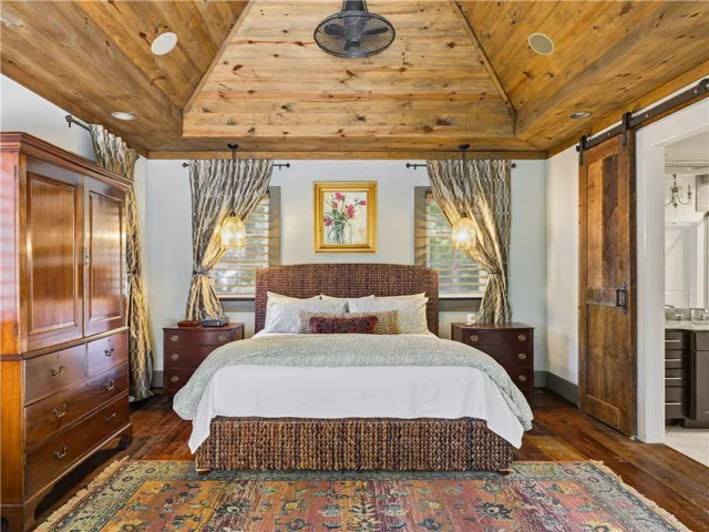Former East Alabama Living Showcase & Alabama’s 1st EarthCents Home—this exceptional residence blends rustic warmth with refined modern design. Custom-built and magazine-featured, it’s filled with architectural detail, reclaimed 1860s heart pine flooring, and walls of windows bathing open living spaces in natural light. The chef’s kitchen boasts a large island with waterfall granite, new KitchenAid appliances, and thoughtful storage including appliance garages and a mixer lift. The primary suite offers a vaulted wood ceiling, antique barn doors, heated marble floors, a luxury wet room with Kohler system, and private porch access.