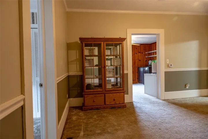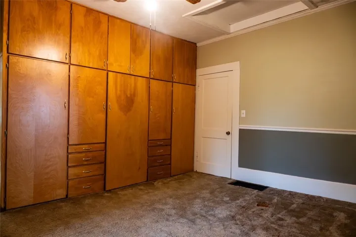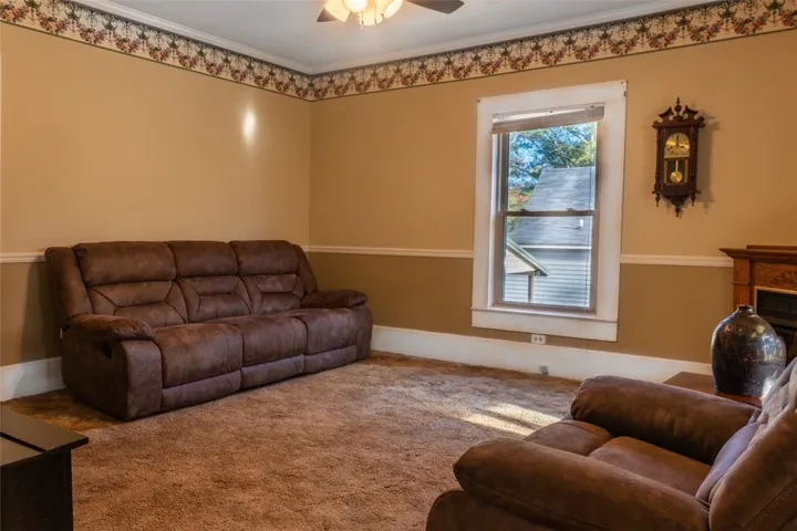 Welcome to charming Craftsman style & excellent outside spaces! A great property for Investors or first Homebuyers, to make their very own! This 3 bed & 2 bath property rests on 0.37 Acres with a fenced in backyard, workshop, a carport on each side of the property & an extra-large working garage ~ creating great usable space for new owners! The cul-de-sac street is quaint, making a great resting spot. The first entry of the home is a closed in porch for relaxing or acting as a bonus area. Front door opens to a small entry, leading into the living room. Adjacent is the kitchen, with ample cabinets, double oven & new microwave. Pantry is found in a small hallway, along with a utility closet. A full bath is located close by. Beyond the kitchen is another living area with built-in cabinets, the center of the laundry & 2 bedrooms. Wood flooring has been revealed & refinished in bedroom #1 following it’s redesign. Laundry room is spacious with shelving & an office area with luscious wood paneling for the walls. Stairs in the kitchen lead into the basement foundation where you’ll find bathroom #2 and a bonus room with back door access to the side yard. New Roof in 2024!! Virtual Tour available of outside spaces!