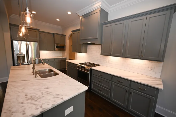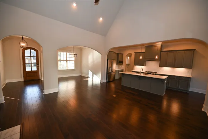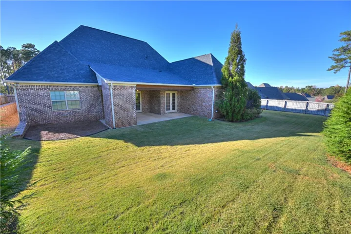 Exceptionally well-maintained brick home w/ upgrades galore! Built by Dilworth Development, this lovely home features a desirable split floorplan w/ 3 of 4 beds on the main level. W/ its Tudor-style brick, arched front door, & side-facing garage, it’s the very picture understated elegance. Inside, the foyer flows into an open living area composed of a spacious great room, gourmet kitchen, & multiple dining areas, allowing meals, conversation, & relaxation to come together w/ease. Soaring vaulted ceilings & a wall of windows make the great room particularly striking, while its cozy gas fireplace – flanked by built-in shelving – lends warmth & character to the dramatic space. Chefs are sure to love the kitchen’s endless storage & work space, top of the line appliances (including 5-burner gas range), custom cabinetry & range hood, stone countertops, & tile backsplash, all beautifully highlighted by under-cabinet lighting. A large center island seats 4, in addition to the formal dining room & a lovely breakfast room w/ French doors to the patio. Off the kitchen is a discreetly placed half bath, a mudroom/drop zone w/ built-in storage bench, & the laundry, which conveniently connects to the primary closet! Closet connects to the lux primary bath, where an extra-deep soaking tub, zero-entry shower w/ bench, & extended double vanity make every day a spa day! Spacious primary suite boasts hardwoods, tray ceiling, & large windows filling the room w/ natural light. Across the home, 2 add’l bedrooms share a Jack & Jill bath w/ separate dressing areas. Upstairs, an enormous 4th bed/flex room features a walk-in closet & private bath w/ tiled shower. Not to be overlooked, the amazing outdoor spaces include a stunning covered porch (w/ gas fireplace, built-in gas grill line, & integrated media wiring) overlooking a fenced backyard w/ manicured landscaping & brick retaining wall. Neighborhood offers miles of sidewalks, unbelievable pools, & much more, just minutes from Auburn Univ!