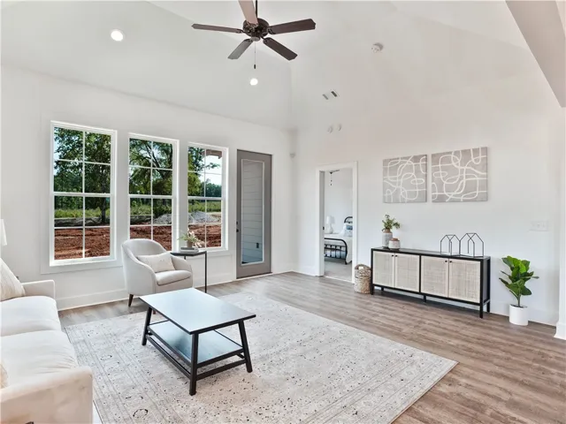 Come Home For The Holidays to the Tate A on Lot 64! FENCE INCLUDED & MOVE-IN READY!! The Tate is a three bedroom, two bathroom, 1448 square foot home. As you enter into the home, you make your way into the open concept kitchen and dining area. The kitchen features a large center island, perfect for entertaining. Tucked behind the kitchen is the pantry and laundry room. The dining room flows into the living area that features floor to ceiling windows and access to the covered back porch. Off the back of the home rests the primary suite that features a spacious bedroom, en suite bathroom with double vanity sinks and a walk-in closet. The second and third bedrooms are tucked off the kitchen and share a hall bathroom. Phase 1 amenities include a dog run & fire pit area. Pool, pavilion, and pickle-ball court amenities to be added in future phases.