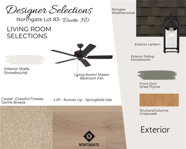 Designer Duette 3D on Lot 83! Close on/before FRIDAY, January 9th, 2026! The Duette 3D is a two bedroom, two bathroom, 1183 square foot home. As you enter into the home, you enter into the living room that features large windows, vaulted ceilings and a reading nook. The living room leads to the open concept dining room and kitchen that features custom cabinets and a large center island. As you make your way to the back of the home, you will find the guest bedroom and guest bathroom and laundry room. The owners retreat rests on the back of the home and features an en suite bathroom and large walk-in closet as well as access to the back porch and outdoor storage closet. Phase 1 amenities include a dog run and fire pit area. Pool, pavilion, and pickle ball court to be amenities in a future phase.