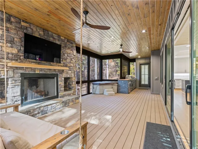 Behind the gates of prestigious Willow Point on beautiful Lake Martin, this CUSTOM ONE-OWNER BUILDER HOME blends exceptional craftsmanship with thoughtfully curated upgrades throughout. From the inviting L-SHAPED COVERED FRONT PORCH WITH BED SWING to the expansive rear screened porch featuring a WOOD-BURNING FIREPLACE, SECOND BED SWING, HOT TUB, BUILT-IN OUTDOOR KITCHEN, AND SURROUND SOUND, every detail is designed for comfort and refined lakeside living. A WALK-IN BASEMENT SAFE ROOM/STORM SHELTER and extensive storage enhance practicality. The main level showcases WHITE OAK FLOORING THROUGHOUT, a spacious entry foyer, and a CHEF’S DREAM KITCHEN COMPLETE WITH THERMADOR APPLIANCE PACKAGE, ICE MAKER AND LARGE WORK ISLAND. The great room features a GAS FIREPLACE AND SURROUND SOUND, complemented by REMOTE-CONTROL SHADES leading to the covered porch. The MAIN BEDROOM EN SUITE offers an elevated retreat with an OVERSIZED WALK-IN SHOWER, DOUBLE VANITIES, SOAKING TUB, and a CUSTOM CLOSET WITH BUILT-INS. Upstairs are TWO BEDROOMS, TWO BATHS, and an ADDITIONAL SITTING AREA ideal for guests. This home is outfitted with top-tier mechanical and structural enhancements, including a 28 KW WHOLE-HOUSE PROPANE GENERATOR, ENCAPSULATED 5-FT CLEAR CRAWL SPACE WITH DEHUMIDIFIER AND 300 SF OF FINISHED CONCRETE STORAGE, a WHOLE-HOUSE TRIPLE-STAGE WATER FILTRATION SYSTEM, 21 SEER CARRIER HVAC SYSTEM, 6-FT TALL FENCED BACK YARD, 500-GALLON IN-GROUND PROPANE TANK, TANKLESS HOT WATER SYSTEM, and 4 EXTERIOR SECURITY CAMERAS for added peace of mind. Residents enjoy WATER ACCESS and exclusive community amenities including a CLUBHOUSE, POOL, PRIVATE BEACH, and an ASSIGNED BOAT SLIP just steps awayoffering the perfect balance of luxury, comfort, and lakeside convenience.