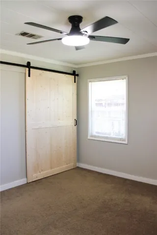 Inside, you’ll find a new wooden beam in the living room, fresh interior paint, updated light fixtures throughout, two aesthetically pleasing barn doors installed in each spare bedroom, a BRAND NEW ROOF, and HOT WATER HEATER for peace of mind. New energy efficient double hung windows throughout. Flooring includes durable LVP in main living areas, tile in bathrooms and dining area, and carpeted bedrooms for comfort.