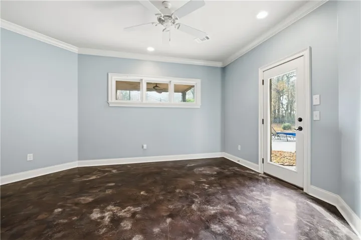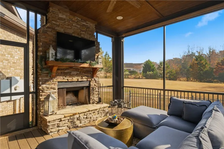 Luxury 3-acre estate built by renowned Michael Allen Homes with 5,000+ sq.ft. of exceptional craftsmanship and over $66K in updates since Oct. 2024. Timeless brick & stone exterior opens into a grand foyer with office/flex room on one side and formal dining on the other. Spacious living room features a gas fireplace and flows into an impressive kitchen with barrel ceiling, large island, gas cooktop, pull-out spice drawers, convection oven/microwave combo, breakfast area and custom Van Nostrand cabinetry. Just off the kitchen is the newly redone screened-in porch (Oct. 2025) with new columns, decking, screening + wood-burning fireplace. A second oversized deck is accessible from both the living room and primary suite, complete with a swing bed and beautiful views of the pool and backyard. Primary suite offers abundant natural light and spa-like ensuite with jetted tub, oversized walk-in shower, dual vanities and extensive storage. Upstairs bonus room may function as a bedroom or media room with infinite potential . Terrace level lives like its own residence with stained concrete floors, large living room + gas fireplace, full kitchenette, wet bar, pool table area, half bath, gym/office, one ensuite bedroom w/ walk-in closet and two additional bedrooms connected by a Jack-and-Jill bath. Outdoor oasis features a stunning pool with NEW Cool Deck (Nov. 2025) designed to stay cool under summer heat, plus newer liner, pump and chlorinator system. Property includes a 3-car garage with new poly floors, spray foam insulation, tankless water heater, buried propane tank, central vacuum, 4-zone HVAC (primary, main, bonus, basement), 9-zone Rain Bird irrigation, tinted windows in basement & primary suite, and extensive landscape lighting. Abundant storage throughout. A rare opportunity to own a private Auburn estate offering luxury, function, and year-round outdoor living at an exceptional level.