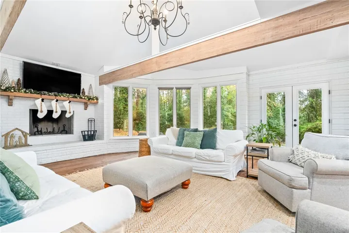 The expansive living room is a showstopper, surrounded by nearly 360 degrees of windows that flood the space with natural light and provide stunning views of the sprawling backyard. Every bedroom and bathroom has been fully redone, bringing a fresh and modern feel throughout the home. The upstairs area offers additional space perfect for guests, a media room, or a cozy retreat.
