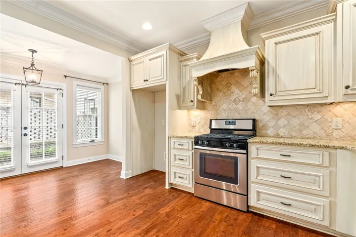 The kitchen is a chef’s dream and offers granite countertops, a vent hood, stainless steel appliances, pantry, drawers in the lower cabinets, a formal dining area and then a eat in breakfast room that overlooks the private patio. Plantation shutters throughout!