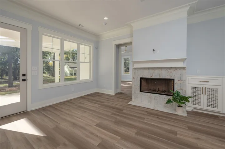 Welcome to The Ruby—a one-of-a-kind custom home where thoughtful design and timeless character meet in Helen Estates, just off Summerville Rd in North Phenix City. This 4-bedroom, 3-bath beauty sits on a level ½-acre lot surrounded by mature hardwoods, creating a natural canopy that provides shade, privacy, and a sense of peaceful retreat. Professionally landscaped with lush Zoysia grass, landscape lighting, and a full irrigation system, the curb appeal is every bit as impressive as what’s inside. Step through the front door to soaring 10-ft ceilings, 8-ft doors, and an open layout filled with natural light. The great room centers around a gas fireplace, connecting seamlessly to the chef-inspired kitchen featuring quartz countertops, a farm sink with accessories, GE Profile Smart Appliances, gas cooktop, double ovens, custom cabinetry with spice pull-out, and a walk-in pantry. The main level hosts a peaceful primary suite with a large walk-in closet and spa-style bath, plus a second bedroom and full bath that offer flexibility for guests, a home office, or multi-generational living. Upstairs, two spacious bedrooms with walk-in closets share a true Jack & Jill bath. Two small unfinished spaces provide creative potential—ideal for a hidden gun safe, craft nook, or playroom. A unique built-out living area under the stairs is wired for cable and offers the ultimate cozy hideaway—perfect for kids’ play, gaming, reading, or even a quiet pet retreat. Outdoor living shines with a covered porch and extended deck overlooking the shaded backyard. Added perks include a large laundry room with linen closet, oversized garage with EV charger, spray foam insulation, tankless gas water heater, security system prewired by Wire Works, and Tech Shield radiant barrier roof decking. Backed by a 2-10 Home Buyer’s Warranty. Listing Agent is wife of Builder/Seller.