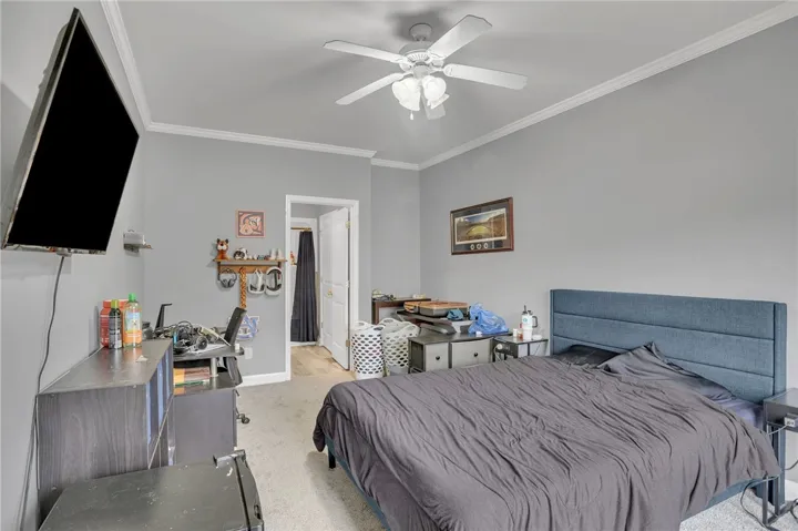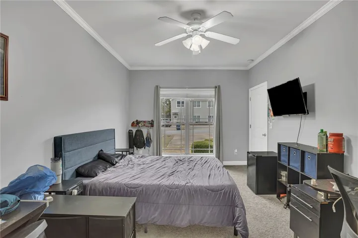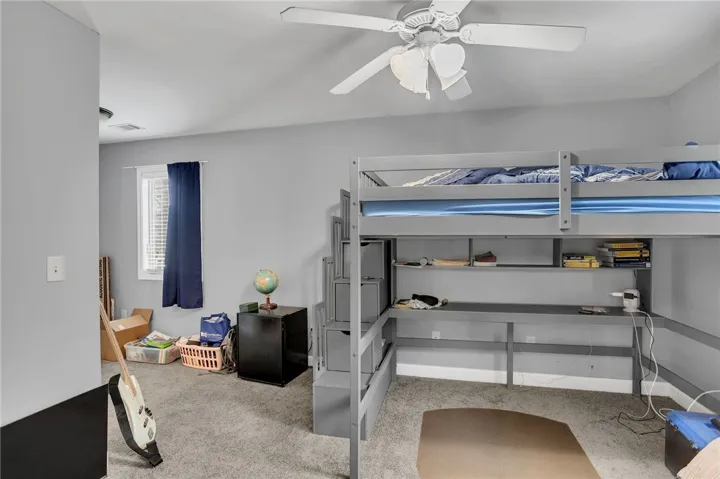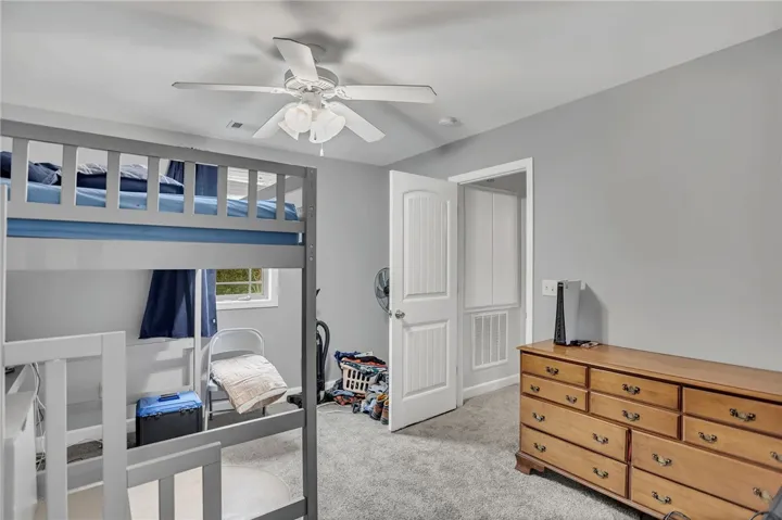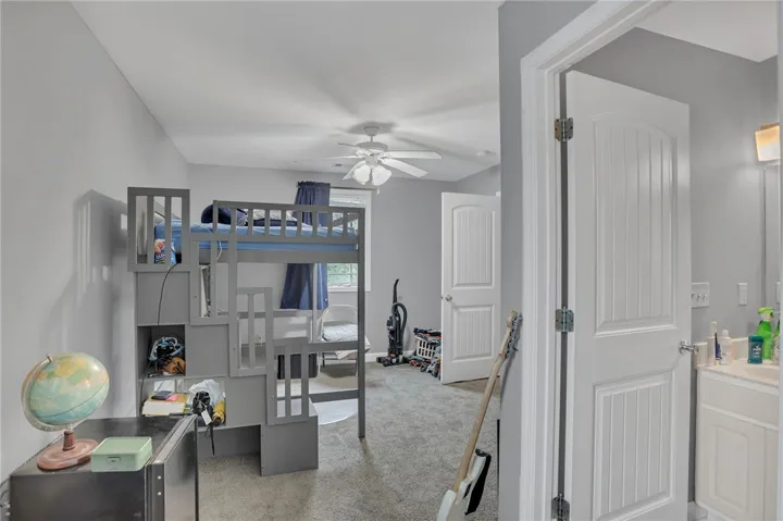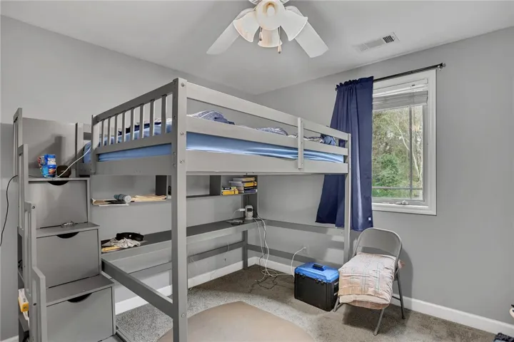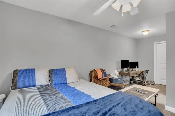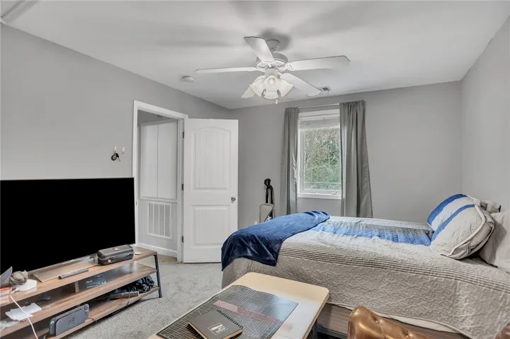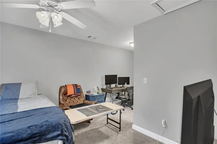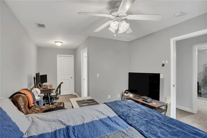 Two spacious bedrooms are located upstairs, each with its own private en-suite bathroom—perfect for roommates, guests, or added privacy. The main-level bedroom also includes its own bathroom access, making the layout highly versatile. The home features new LVP flooring throughout the downstairs and new carpet in all bedrooms, offering a fresh and updated feel.