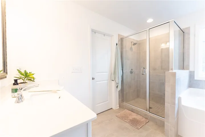 The owner’s suite offers an oversized walk-in closet, separate granite vanities, a tiled shower, and a garden tub. Additional features include upstairs laundry, 5” engineered hardwood floors on the main level, and tiled wet areas.