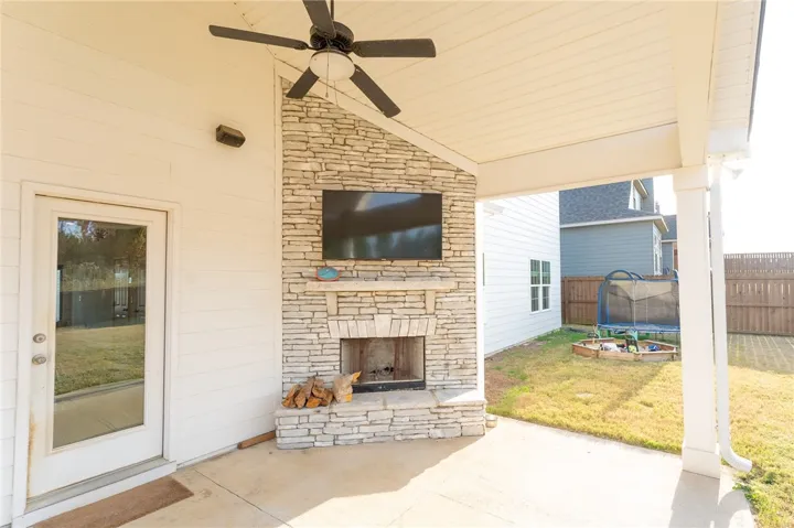 Outside, enjoy the signature game day patio with ceiling fan, wood-burning fireplace, and pre-wiring for a TV.