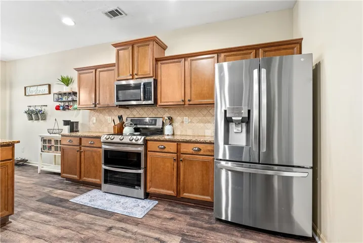 Welcome to your dream home in Solamere—a beautifully designed 5-bedroom, 3-bathroom residence situated on a nearly half-acre lot. This home blends spacious living, thoughtful upgrades, and incredible outdoor features, making it ideal for both daily comfort and entertaining. Step inside to a warm, open-concept layout highlighted by hardwood flooring, generous natural light, and a wood-burning fireplace in the living room. The kitchen is the heart of the home, featuring a breakfast nook, walk-in pantry, stainless steel appliances, and excellent flow into the main living areas. Downstairs includes a guest suite with full bath, while upstairs offers four additional bedrooms, a shared hall bath, and a conveniently located laundry room. A built-in speaker system on both levels adds to the home’s modern functionality. Out back, enjoy your private outdoor oasis, complete with a covered patio, in-ground pool with a 20-year liner and fire pit—all overlooking a peaceful pond view. The fenced backyard and hardwired camera system provide privacy and peace of mind. Additional features include: a double-stacked Bluetooth-enabled oven with air fryer, new water-resistant flooring in key areas, a wired security system, ceiling fans throughout, attached 2-car garage, an extended driveway that parks 6 vehicles and HOA not required with this property. This home offers the ideal balance of space, features, and freedom—schedule your showing today!