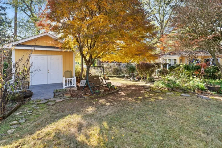 There are houses that simply sit on a street, and then there are homes that radiate something the moment you pull up, homes that feel cheerful, hopeful and unmistakably full of life. This quintessential 1950s yellow cottage is exactly that. With it’s exterior painted the color of pure sunshine and it’s charming architectural character preserved from a bygone era, this is the kind of place that stops you mid-drive. The curb appeal alone feels like a storybook moment: golden exterior glowing against a bright blue Southern sky, framed by one of the most beautiful cottage syle gardens you’ll find anywhere in Auburn. It’s the sort of scene that instantly lifts your spirit, the kind that makes you smile before you even step out of the car.