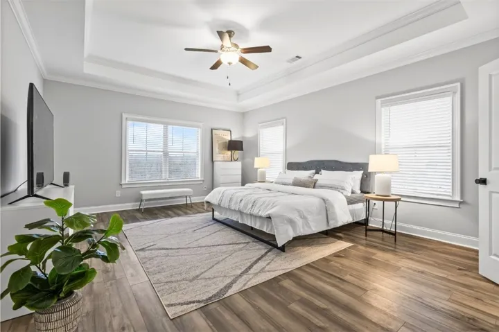 Experience luxurious single-level living in this immaculate 2022 build. The home features a seamless layout with 4 bedrooms and 3 full baths, one story, ideal for comfort and entertaining. Enter through the front porch into a graceful foyer. A private study and formal dining area lead into an open-concept living space. The chef’s kitchen boasts a large eat-in island, ample cabinetry, and a spacious pantry, flowing into the great room with expansive windows. The master suite offers a serene escape with elegant tray ceilings and a spa bath featuring a large shower, garden tub, and expansive walk-in closet. Step outside to the heart of the home’s entertainment space: a very spacious, fully enclosed covered rear porch featuring an outdoor fireplace. This year-round outdoor room offers great views and tranquility, perfect for quiet mornings or lively evening gatherings. Efficiency is key with attic spray foam insulation and a tankless water heater. Enjoy the desirable neighborhood with fantastic amenities including two community pools, a covered pavilion, and a playground. The location provides unmatched convenience, close to major highways, golf, downtown, and a prestigious university. This exquisite property offers everything you desire. Schedule a showing today!