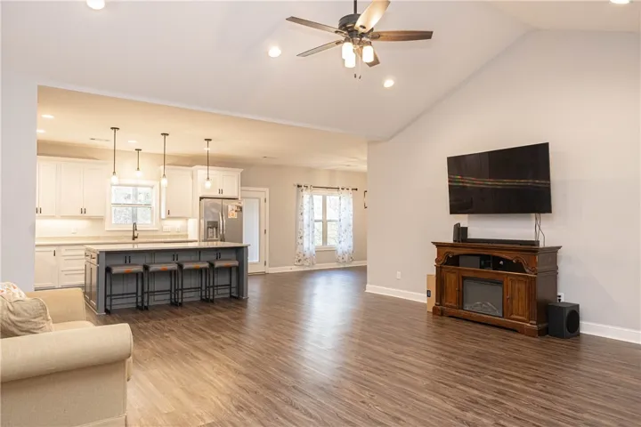 Back on the market, no fault of the seller! This nearly new 4BR/2BA Craftsman-style home in the Deer Subdivision has so much to love! The spacious living room greets you with vaulted ceilings, recessed lighting, and an open floor plan. The kitchen boasts an oversized island, quartz countertops, soft-close cabinets, and stainless-steel appliances. There is large dining area just off the kitchen perfect for those family dinners. The split bedroom layout includes a roomy master suite with a walk-in closet and attached bath. The master bath features a tiled shower, freestanding soaking tub, and quartz-topped vanity. Three additional bedrooms offer comfortable space with carpeting. The secondary bath has a tub/shower combo and quartz vanity. Other perks include a generous laundry room, a two-car attached garage, a covered patio, a large yard, and a privacy fence. This home truly has it all—come see for yourself!