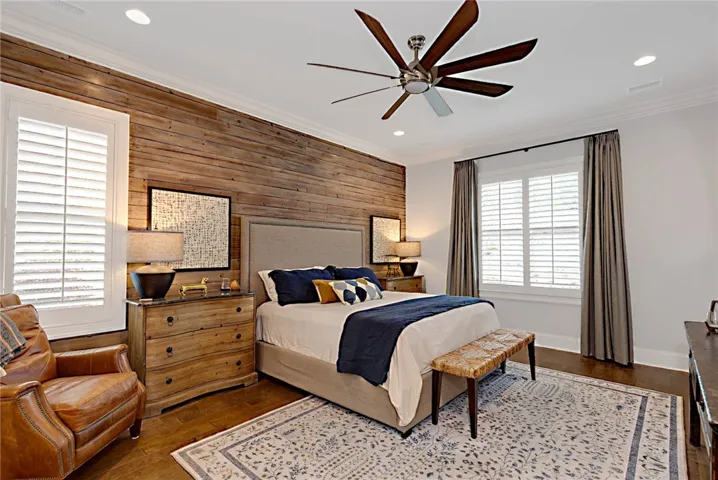 Welcome to this stunning custom-built home in The Overlook at Moore’s Mill, where luxury meets comfort. As you enter, you are greeted by a spacious formal dining room that flows seamlessly into the sunlit living room and gourmet kitchen, creating an inviting atmosphere ideal for both entertaining and relaxation. The kitchen is a chef’s dream, showcasing two-tone custom cabinetry, honed marble countertops, and a large island with seating for four. Enjoy casual meals in the cozy breakfast nook, while the butler’s pantry, complete with wine racks and a wine cooler, adds elegance. Top-of-the-line stainless steel appliances, including a gas cooktop and a walk-in pantry with custom shelving, elevate this culinary space. The living room serves as a warm retreat, featuring a gas log fireplace with a stone surround and custom built-ins. Step directly onto the charming rear porch for outdoor enjoyment. The luxurious master suite stands out with a wood accent wall and direct porch access, while the master bathroom boasts a soaking tub, double vanity with honed marble countertops, and a fully tiled zero-entry shower. A custom closet with built-in drawers completes this sanctuary. On the opposite side, you’ll find two additional bedrooms and a beautifully updated full bathroom. This wing also includes a spacious laundry room with ample counter space, a wash sink, and new tile. Upstairs, discover a versatile secondary living area, a large bedroom, and a bathroom, along with a flex room that was previously a secondary closet. The entire upper level features new hardwood flooring. Step onto the covered back porch, perfect for year-round enjoyment with a tongue-and-groove ceiling, flagstone flooring, and a custom wood-burning fireplace. Additional features: Sonos sound system in house, Spray foam insulation, Infinity HVAC system, whole home surge protector, fenced back yard, Oversized 23′ deep X 24′ Wide garage & golf cart path access to Moores Mill club . Photos to come Friday
