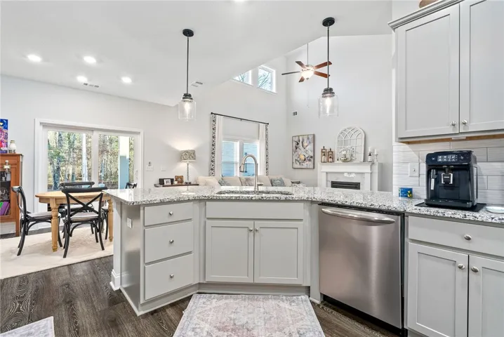 Don’t miss this like-new and meticulously maintained beautiful home offering four bedrooms and 3.5 baths located on over a half an acre. Upon entering this home you are greeted with an open first floor, boasting a formal dining room with wainscoting and a gorgeous tray ceiling adding character and elegance. This dining room flows seamlessly into the kitchen and a stunning two-story great room, creating a bright and inviting space for living and entertaining. The spacious kitchen features granite countertops and overlooks the great room making it perfect for hosting gatherings. This thoughtfully designed floorplan includes a large primary bedroom on the “main level” creating a true retreat with an ensuite bath boasting granite countertops, double vanities, a tiled shower and separate tub. For convenience you also will enjoy a half bath, mud area and nice laundry room on the first level. Upstairs you will find 3 generous size bedrooms, two large guest baths and a wonderful bonus loft area ideal for another living, exercise or office space. All the closets as well as the laundry room have upgraded custom Elfa shelving. If you are looking for privacy, this home sits on a corner lot with woods in the back. You can enjoy entertaining on your back covered patio and extended patio beyond the roof line. A fenced backyard is a great asset to have as well as the extended cement driveway. This location is perfect for convenience to Opelika and Auburn, but yet offers a suburban feel with privacy, trees, and large lot.