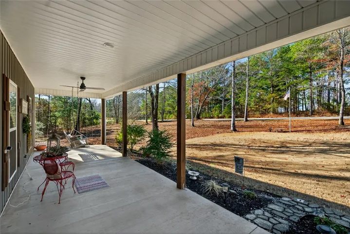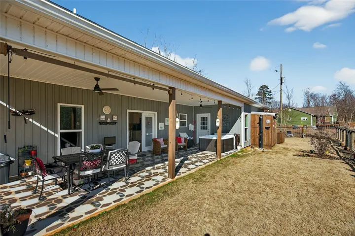 Like the Barndominium Style Home ? This one is for YOU ! Beautifully thought out design. One level, Handicap accessible. Built in 2023, One Owner, well loved ranch on 1.5 acres with NO HOA. Features three bedrooms two bathrooms, split bedroom plan, large open living room, kitchen with stainless appliances, an island and solid surface countertops. The owners suite has a separate tub and a large walk in tile shower, dual vanity, tile flooring. From the dining breakfast area French doors lead to a spacious covered patio, a solar shower, a partial fenced in sodded back yard which is great for the little ones to play or if you have puppies, it allows them room to roam and play. The attic leaves a possibility for room to grow. Large laundry room with wall of cabinets and counter space. You will find plenty of storage for your mower and outdoor tools with a storage / tool room. Call and set up your appointment to see before this one gets snapped up ! Since purchased the owner has put in a new cement driveway, sod in front and back yards, fence and storage addition. Located in AG district so farm animals are ok here. Perfect home for a hobby farm.