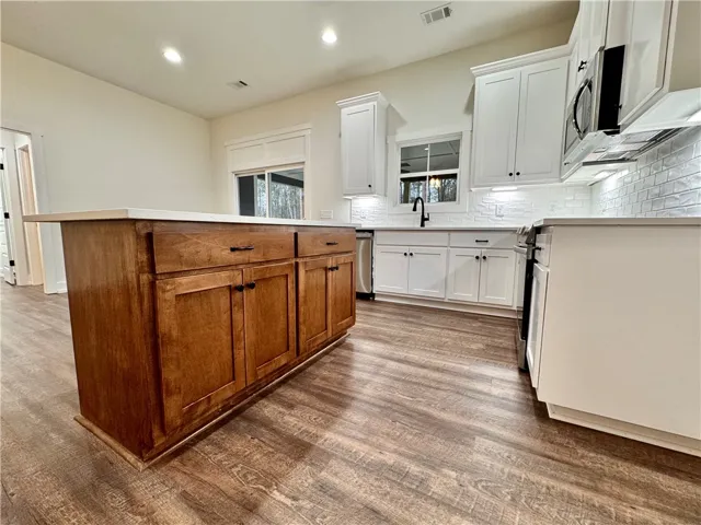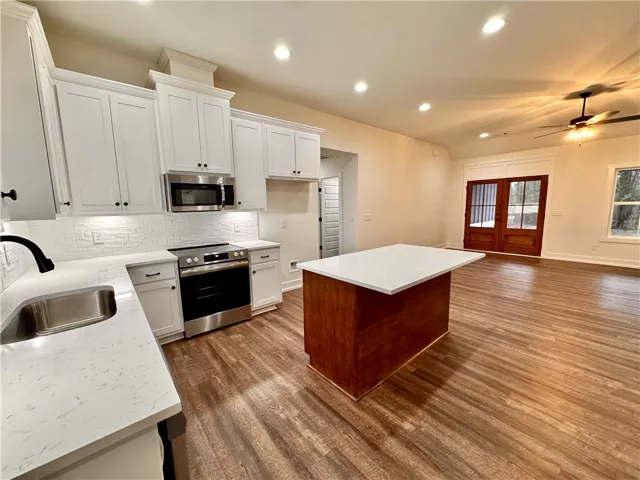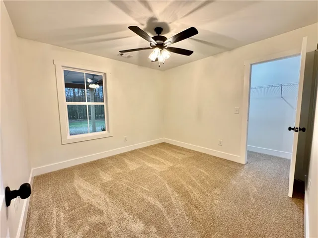Welcome to this beautifully designed 3-bedroom, 2-bath home situated on 1.61 acres, offering privacy, space, and modern comfort. This thoughtfully crafted home features an open-concept layout with modern finishes throughout, including quartz countertops, making it ideal for both everyday living and entertaining. The spacious kitchen includes a center island with quartz countertops and opens seamlessly to the living and dining areas. All bedrooms feature walk-in closets, and the split-bedroom floor plan provides a private primary suite complete with an en suite bathroom and a large walk-in closet. A large laundry room and a custom drop zone off the two-car garage add everyday convenience, while the garage also includes a spacious storage closet. Enjoy outdoor living on the covered front and back porches, both featuring double doors that enhance natural light and indoor-outdoor flow. Mature trees provide privacy from the road, and the home is positioned toward the back of the 1.61-acre lot for added seclusion. Conveniently located while still offering a peaceful, country feel, this home is a must-see.