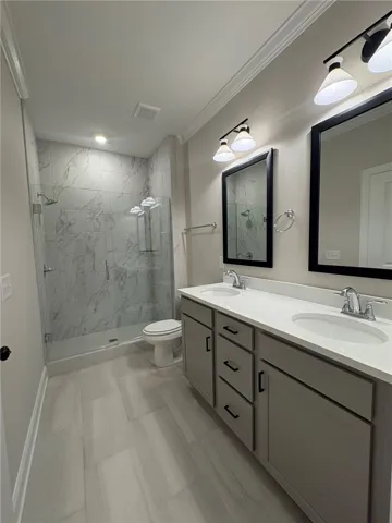 New white exterior townhome building! There will only be 4 buildings with the beautiful white exterior. Beautiful two-level townhome offering a thoughtful and versatile floor plan. The main level features a spacious primary bedroom with en-suite bathroom, a convenient half bath, and a flexible living area highlighted by a custom half-wall bookshelf—perfect for a home office or reading nook. The kitchen and bathrooms showcase elegant grey cabinetry paired with crisp white quartz countertops, creating a bright and modern aesthetic. Upstairs, enjoy a welcoming loft space, two additional bedrooms, and a full bathroom—ideal for guests or additional living needs. The front of the home faces peaceful woods and community common space with walking trails, providing a serene setting. Outdoors, a private, fenced, courtyard seamlessly connects the back patio to the two-car garage, offering a quiet and functional outdoor retreat. This townhome blends comfort, style, and a tranquil location. This listing is for lot 276. Images used in this listing are of the interior unit model home, not the home for sale. The design selections can be seen in the listing images. *Current incentive is $7,500 toward closing costs with Silverton Mortgage. This will cover most, if not all, closing costs. Estimated completion is May 2026.
