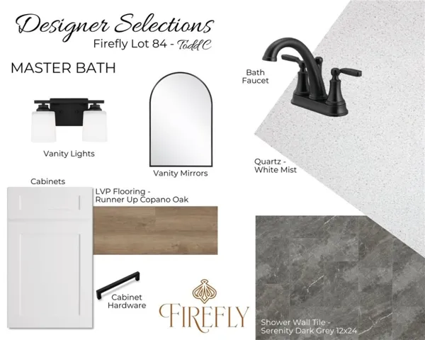 Welcome to the Todd C on Lot 84 – ESTMATED COMPLETION MARCH 2026! The Todd C is a three bedroom, two bathroom, 1395 square foot home. The front door opens to a spacious foyer with a coat closet. As you enter through the foyer, you are greeted by an open concept kitchen and dining area. The kitchen features a large center island and flows into a spacious pantry and laundry room. The dining area and kitchen open up to the living area that features large windows and access to the covered back porch. Off the living room rests the primary suite, that features a spacious bedroom and en suite bathroom with a large walk-in closet and double vanity sinks. The second and third bedrooms are located at the front of the home and share a full bathroom. – Phase 1 amenities include pickle-ball court and recreational area, Community Pool & Clubhouse. More amenities to come.