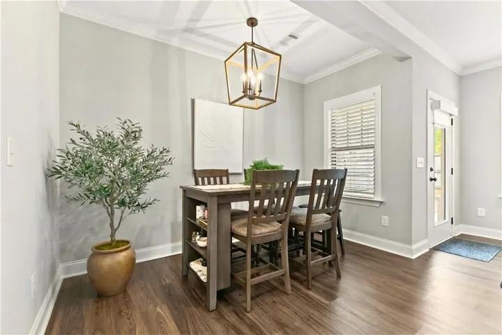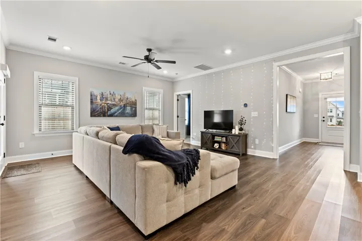 Inside, discover 9-foot ceilings w/attractive lighting, durable LVP floors & quartz countertops. The kitchen impresses w/abundant cabinetry, under-cabinet lighting, a stylish tile backsplash, generous island, sizable pantry & all appliances! Perfect for both everyday living & entertaining, the open layout extends to great living & breakfast spaces enhanced w/natural light.