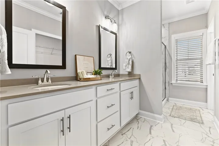 A roomy owners suite (able to accommodate most any furnishings) leads to adj ensuite offering dual vanities, a spacious walk-in shower, 12×24 tile flooring, walk-in closet + private potty. Full laundry (w/d incl), must-have 1/2 bath & easy access to dbl garage round out the main level. Upstairs, you’ll adore the sunny loft space ideal for a second den or perhaps an office! Two sizable guest rooms, nice closet space & an oversized hall bath will not disappoint!