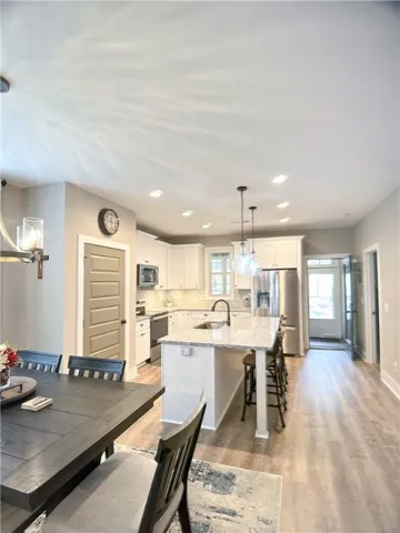 Welcome to 878 Village Drive! This home has been exceptionally maintained and offers a true turnkey opportunity in Opelika’s Fox Run Village community. Built in 2023, this 3 bed 2 bath home is located at the very back of the neighborhood on a wooded lot and includes an attached garage with space for two cars. There are numerous improvements throughout the home: For outdoor living you’ll find a sunroom and covered patio on the back of the home that overlooks a terraced backyard. A custom built wood and black metal fence frames the rear of the yard with an arbor in the middle that provides views of the wooded forest behind the property. This is a gardener’s paradise! The sellers also added covered gutters to the perimeter of the roof and had all eaves caulked and repainted. Inside the home a sliding barn door has been installed to provide privacy to the secondary bedrooms and hall bath. Microwave, stove, and dishwasher included with purchase.