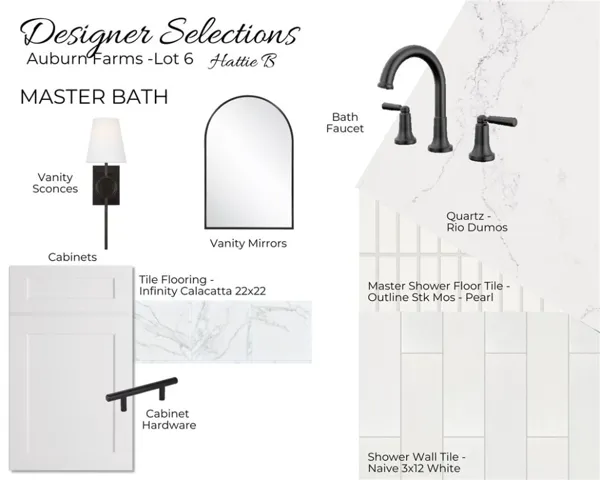 Welcome to Auburn Farm’s! Experience thoughtful design and everyday luxury with this beautifully crafted two-story floor plan, created to bring comfort, convenience, and style together under one roof. The Hattie A is a 4 bedroom, three and a half bath with 2,397 square feet. The main level centers around an expansive great room that flows effortlessly into the dining area and chef-inspired kitchen, complete with a large island, walk-in pantry, and easy access to the covered or screened porch — perfect for indoor/outdoor living. The main-level primary suite offers a serene retreat featuring a spa-style bath with dual vanities, a garden tub, and a spacious walk-in closet. Additional conveniences include a dedicated drop zone, full laundry room, powder bath, and an optional pet station, all ideally located near the garage entry to support busy lifestyles.