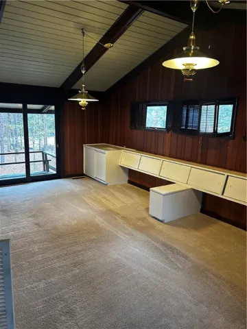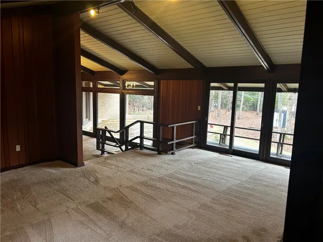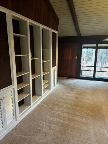 Mid-Century Modern on 1.15 acres in highly desirable Cary Woods. Close to campus. Original Anderson windows; The main living area with vaulted ceilings throughout feature an eat-in kitchen with marble countertops, double oven, abundance of cabinets and an island with bar seating and features a cozy fireplace. A spacious separate dinning room overlooking one of the stone patios. A large living room includes the third fireplace. Bonus/entertainment room is adjacent to the living area. Master bedroom suite has three closets, dressing area, large marble vanity, tub and a separate shower. Two more BR share a bath. Built-ins throughout the home including beautiful wood and lead glass built in cabinets in the dining room. Walkout basement has bedroom with built-ins, large closet, full bathroom, and spacious living space with the third fireplaces. Outside, enjoy over 1300 square feet of flagstone patio, mature landscaping, accent lights, & double garage with multiple storage areas and room for work space. Ample extra exterior parking for your guests when entertaining.