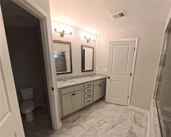 Move-in-ready home located on a premium corner lot in Wyndham Village, featuring numerous upgrades. This spacious Jackson floor plan offers 3,324 sq. ft. with an impressive two-story foyer. The home boasts a stunning kitchen with stainless steel appliances, granite countertops, a large island with sink, and a walk-in pantry. The great room is warm and inviting with a wood-burning fireplace. The tiled laundry room is conveniently located on the second level. The expansive owner’s suite includes a double vanity, garden tub, separate shower, and an oversized walk-in closet. A guest suite is located on the main level, ideal for visitors. The owner’s entry from the two-car garage features a practical drop zone with built-in storage cubbies. This intelligent home is equipped with keyless entry, a touchless video doorbell, a control panel, and app-controlled front porch lighting for seamless remote access. Additional highlights include natural gas for cooking, the great room fireplace, and a tankless water heater. The Gameday patio is perfect for entertaining, complete with a wood-burning fireplace, speakers, ceiling fan, and pre-wiring for TV installation.