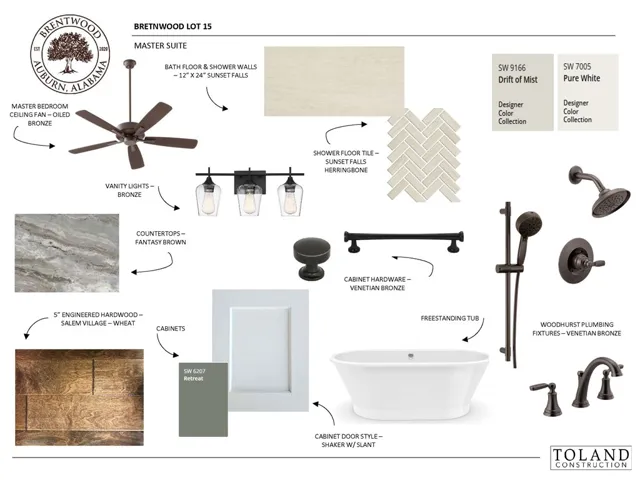 Introducing the Redbud Plan by Toland Construction—brand new to Brentwood’s portfolio. Nearly ready for occupancy, this thoughtfully designed, single-level home offers three bedrooms and three full baths, delivering the livability today’s buyers value.The flagstone front porch introduces a welcoming foyer that opens into a spacious great room, adjacent to the kitchen, dining area, and expansive rear covered porch. The kitchen features a large island with seating and a subtle pop of color, echoed in the primary bath and laundry. A gas fireplace anchors the living area, while a wall of glass along the rear elevation adds light and architectural interest. The primary suite is positioned adjacent to the porch and offers a beautifully appointed bath with dual vanities flanking a garden tub, a zero-entry shower with floor-to-ceiling tile, a separate water closet, and an oversized walk-in closet. Two additional bedrooms each offer access to full baths, providing comfort and privacy for guests or family members. Hardwood flooring runs throughout, complemented by high-end finishes and an abundance of windows. A well-appointed laundry room with ample cabinetry, coupled with additional built-ins/closets, including linen storage and a spacious closet at the owner’s entry, add exceptional functionality. Tucked away on a quiet cul-de-sac, this home blends refined design with everyday functionality.