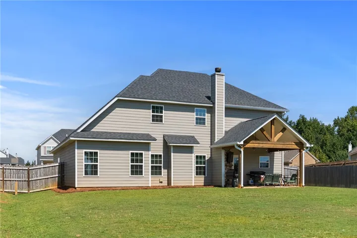 Move-in ready + $3,000 toward buyer’s expenses! Built in 2022 and located in an established section of the neighborhood, this 4BR, 3.5BA home offers 3,029+ sq ft with a large bonus room and a layout designed for everyday living. The main level features a welcoming foyer, flexible office or dining space, and an open living area with tall ceilings and a gas fireplace. The kitchen is well appointed with granite countertops, gas range, large island, and walk-in pantry. The primary suite is on the main level, while upstairs includes three additional bedrooms, a bonus room, and two baths. Enjoy a covered back porch with wood-burning fireplace overlooking the fenced yard. Community amenities include sidewalks, pool, and playground, with quick access to I-85, Hwy 280, schools, shopping, and dining.